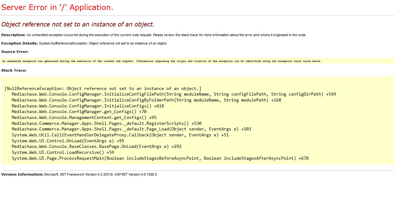 Hi - have you made any changes to your Commerce Manager Apps folder? If not I would suggest to replace it with a fresh copy of a CM site which matches your version