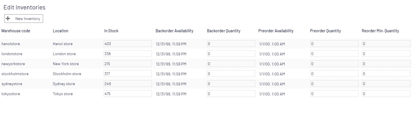 @Quan Mai I have figured out why Edit Inventories is not there. However, In stock still cannnot be updated. I have the site in multi-languages including english as master language. If I go to the english site the button appears and I can save min/max quantity as well which is not the case in other languages. In other language, it was giving "This property is shared between all languages and can only be edited in the master language." message for property like min and max quantity. So, I overridden those properties and made them culture specific. Is this the wrong way to deal with such scenarios (multi languages)? Should I create new question for this?