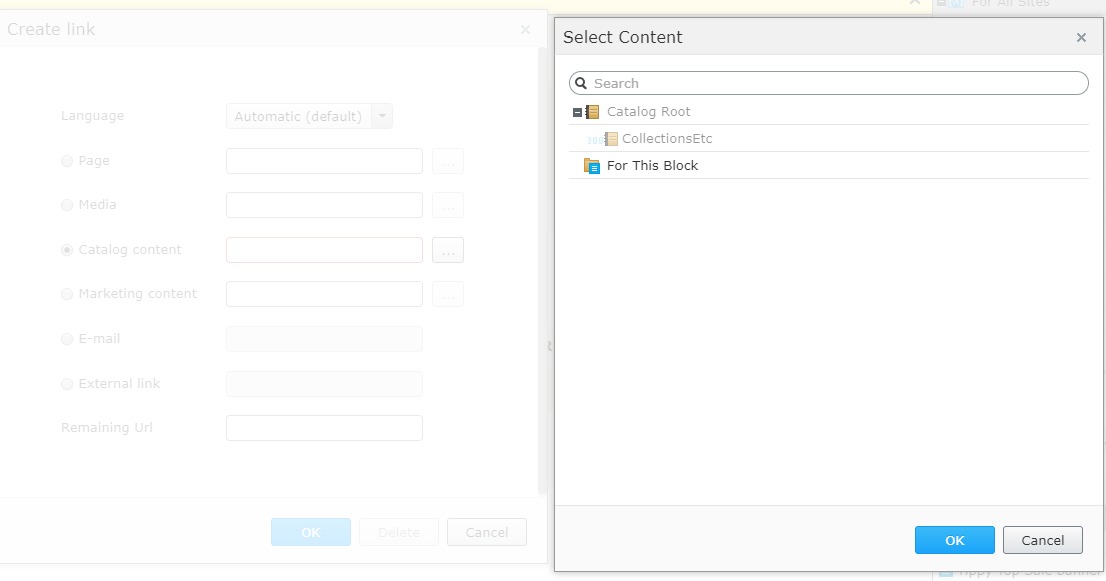 Hey all, I am having an issue where the catalog is greyed out and wont load when trying to add catalog content to a EPiServer.Url property. However we can see the full catalog in the cms and that loads just fine: