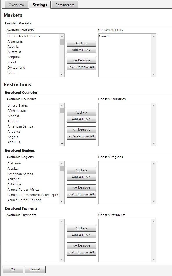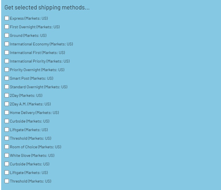 In English this shipping method is assigned to the U.S. market, and in English (Canada) it is assigned to the Canada market. When I create/edit a shipping discount such as Buy Products for Free Shipping. I only see an option for Express (Markets: US). I expect to see a completely separate shipping method (since they have different IDs due to existing under different translations) with the display value Express (Markets: CA).