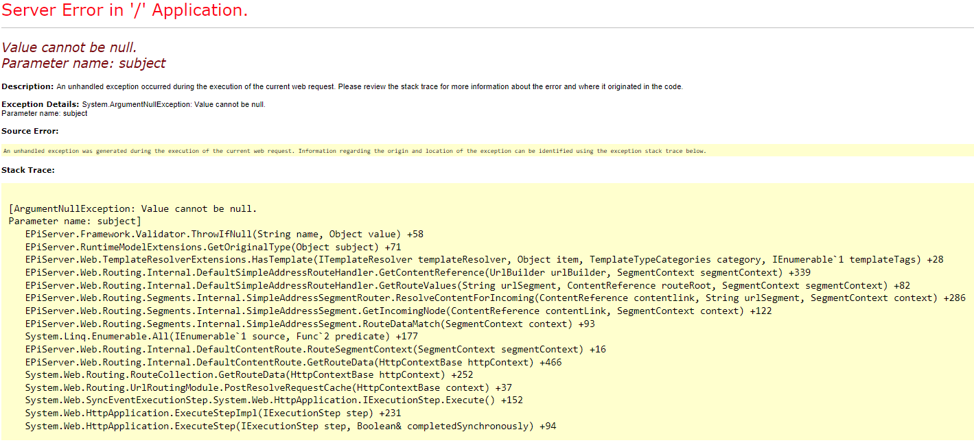When trying to access the url of a newly created product in the catalog (not yet published), we are getting a 500 error in the application, see below image.