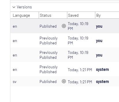 Variant version history similar to cms content version history?