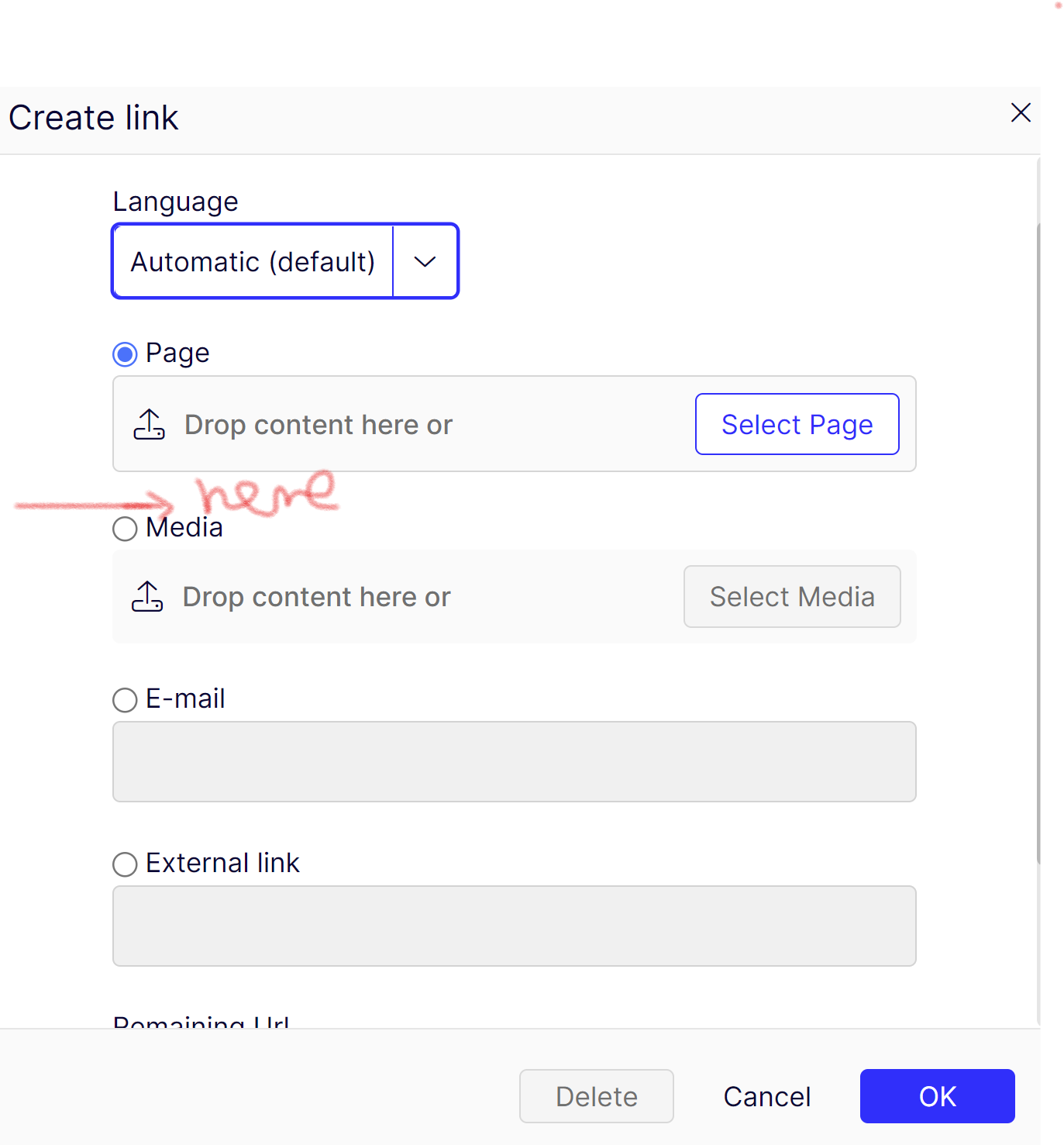 How to extend Url property to add extra option with choice of block (similar to Page option) CMS 12