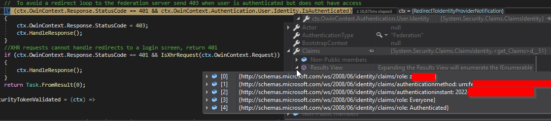 if (ctx.OwinContext.Response.StatusCode == 401 && (ctx.OwinContext.Authentication.User.Identity.AuthenticationType == WsFederationAuthenticationDefaults.AuthenticationType && ctx.OwinContext.Authentication.User.Identity.IsAuthenticated))