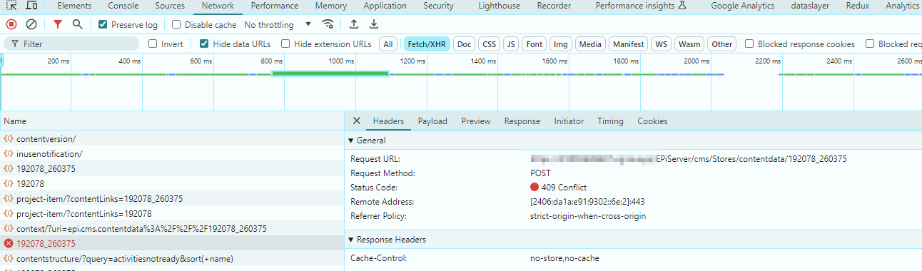 "Unable to load /EPiServer/cms/Stores/contentdata/159007_467443 status: 409"