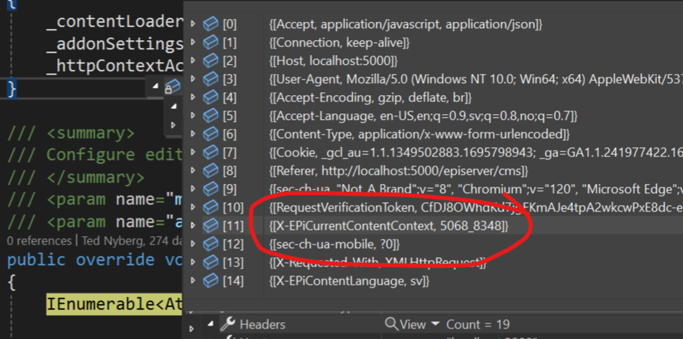 Ah, ok, misunderstood the purpose of the code sample... Yeah, getting the content reference from the header worked just fine, although I'm not sure Optimizely would consider it a breaking change if they changed/removed it. :)