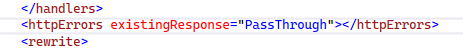 <httpErrors errorMode="Custom" existingResponse="Replace">