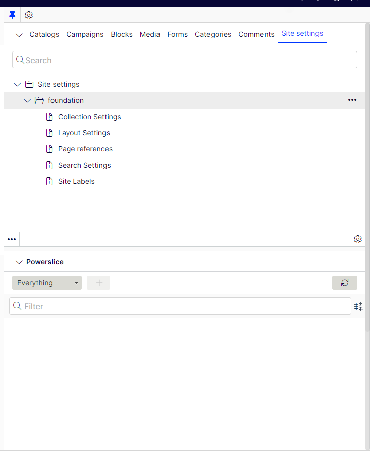 But in Foundation, it has the Categories, Comments, and the Site Settings