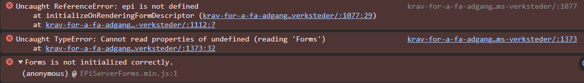 This element should be hidden, but it's not. When inspecting the console i can see these error-logs: