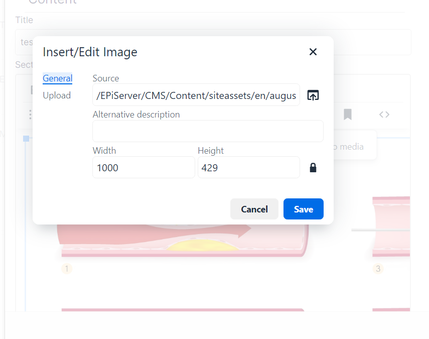 I am looking for some documentation/ guidance for displaying a text message on the image upload box in TinyMCE RTE in the CMS.