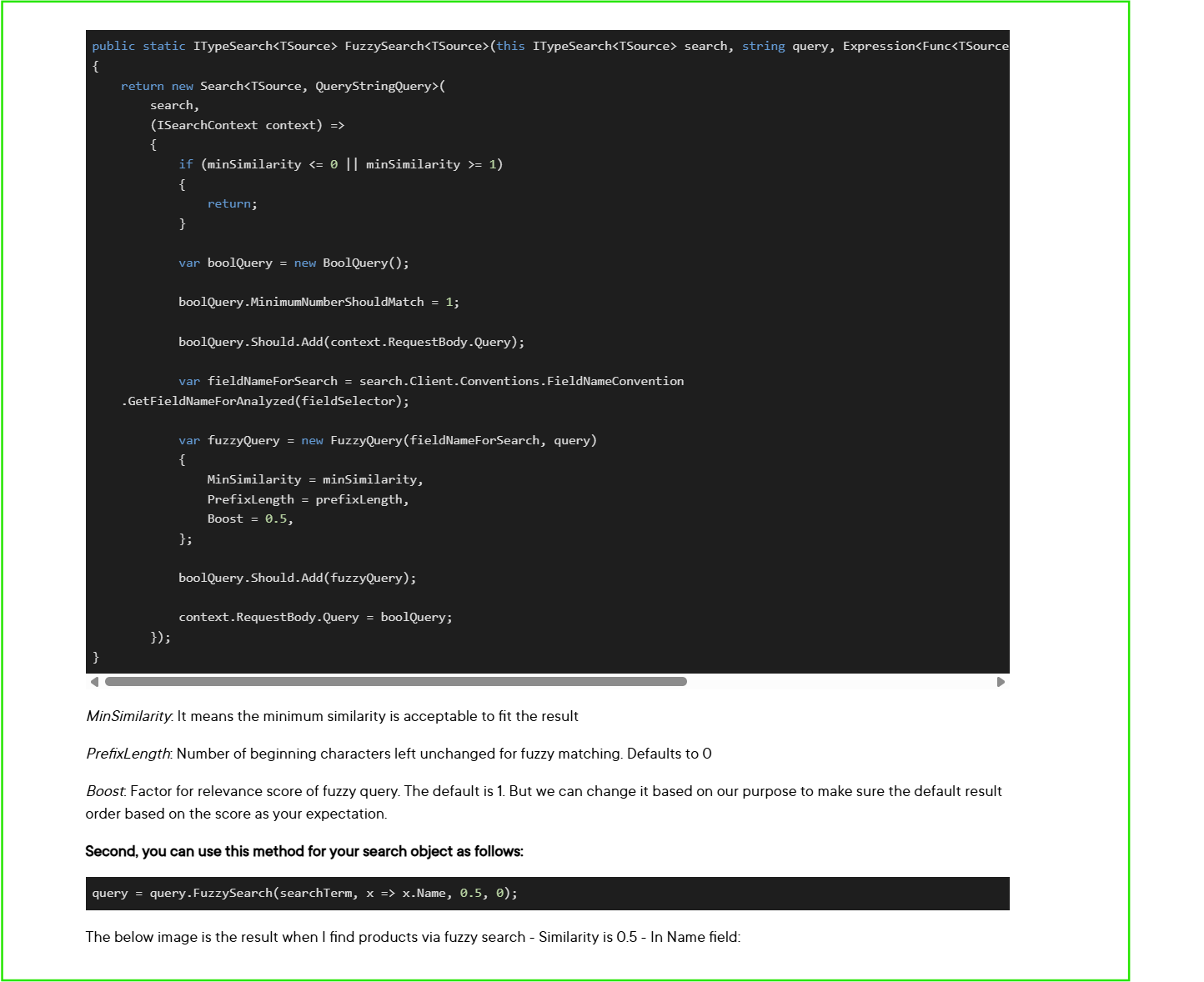 Hello, im trying use the fuzzy search functionality to match results based on a user entered query