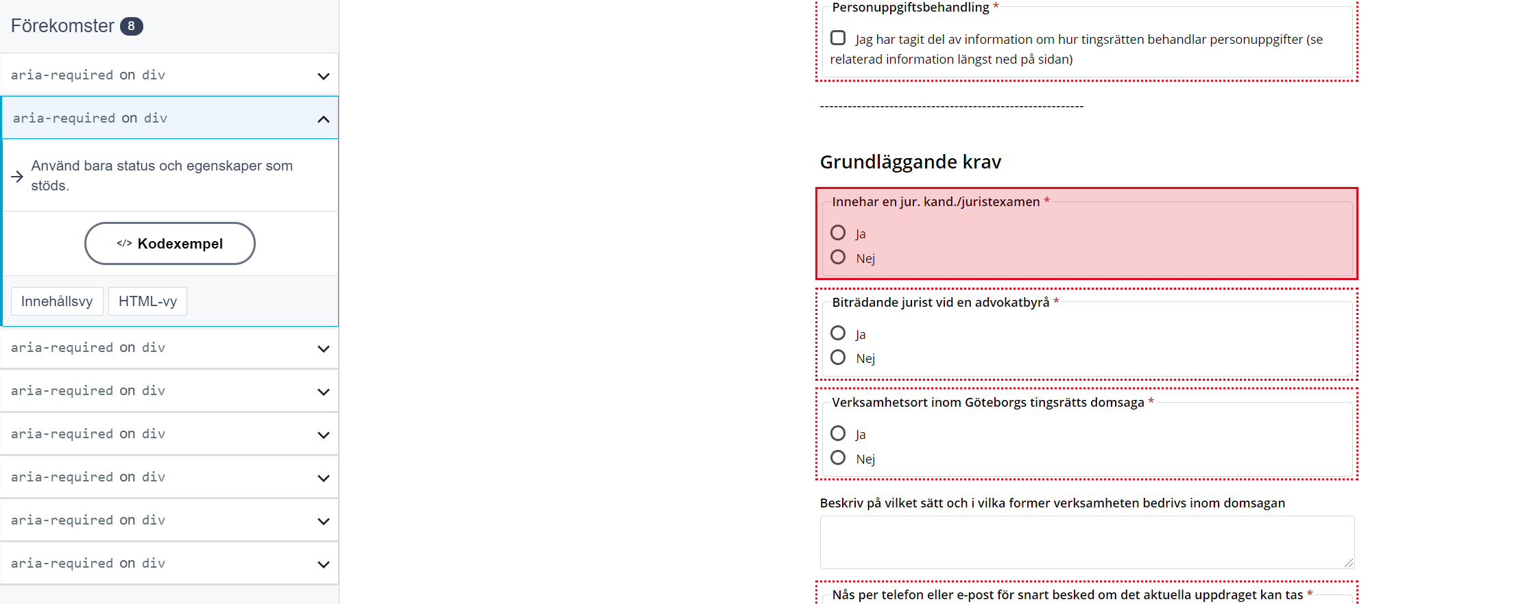 We are using Episerver Forms v.4.29.3 and when editors set the checkbox and radio input fields to be mandatory from the Episerver interface, the aria-required attribute is set on the div of the container holder for the elements. This is pointed out as an accessibility issue in the SiteImprover tool.