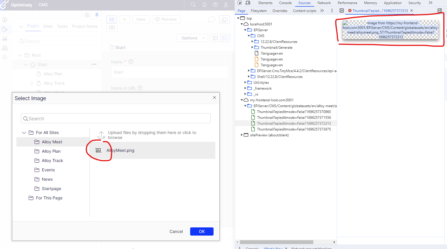2. Thumbnail images are broken in edit mode, since they are requested using the frontend host name (but with the port of the CMS host)