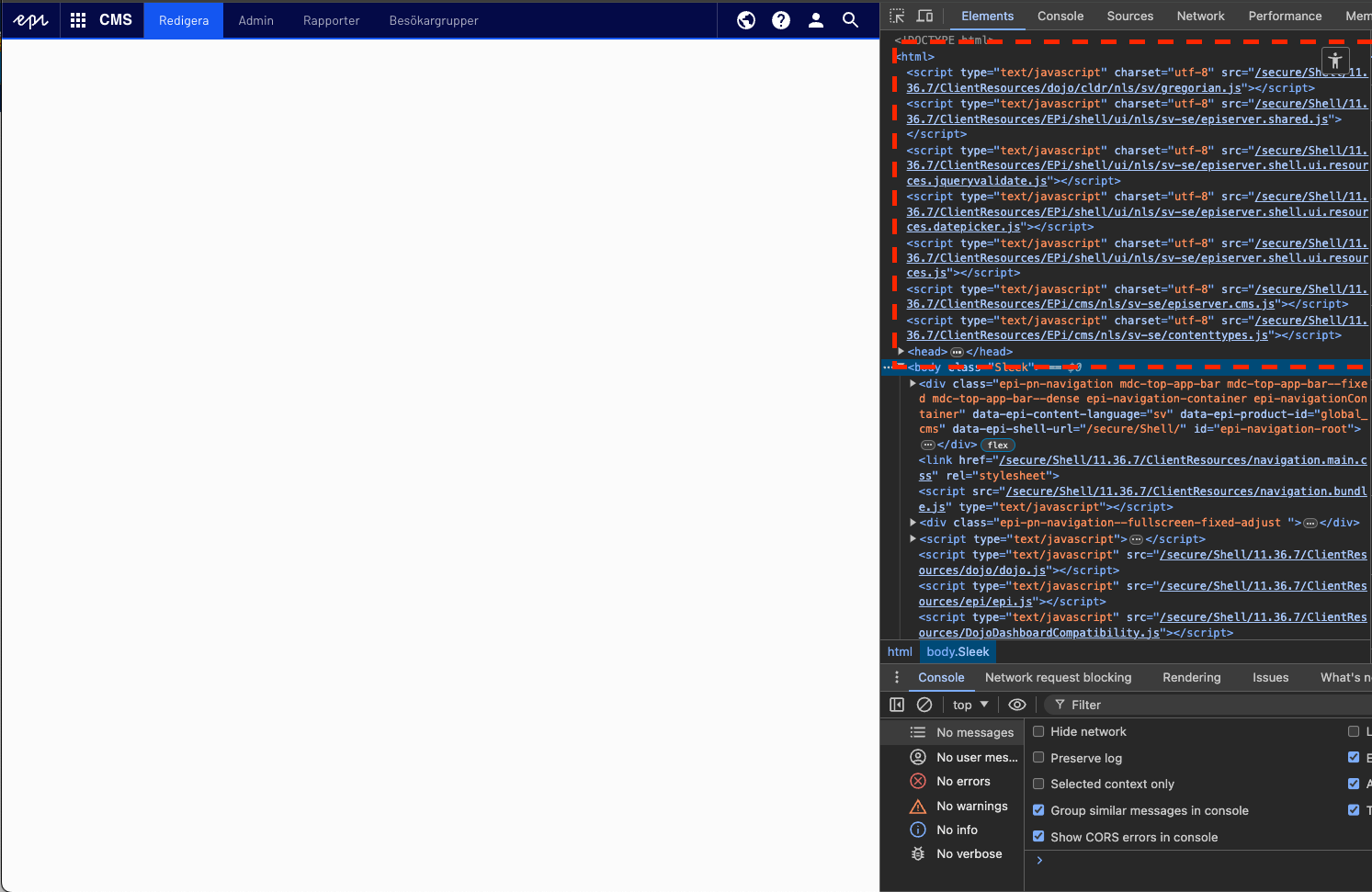 I have a problem when using Vue Devtools extension in chrome with Optimizely CMS. Most of the times the Dojo gets injected in the HTML element instead of inside the <head> element and prevents the CMS to load correctly.