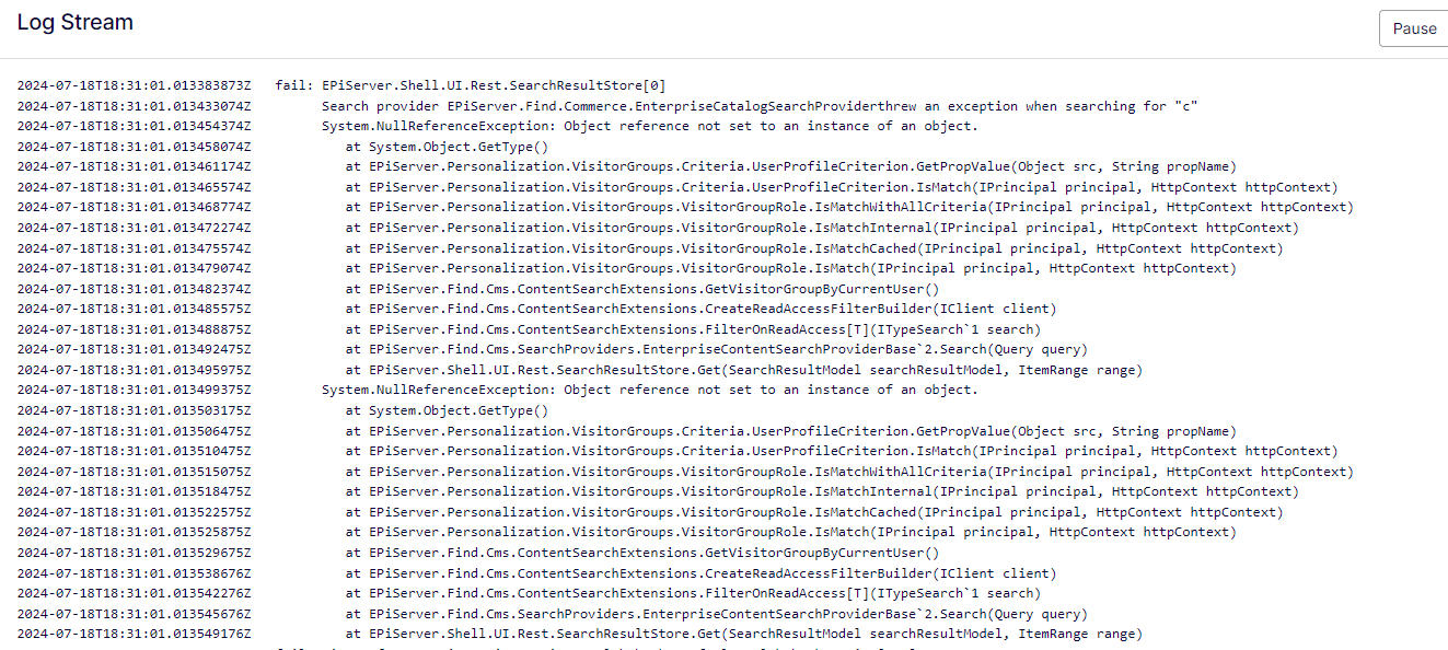 Hi. The visitor groups are not available to personalize content in CMS and we see an error related to Visitor Groups and Episerver.Find.Commerce. It seems to happen in internal Episerver classes.