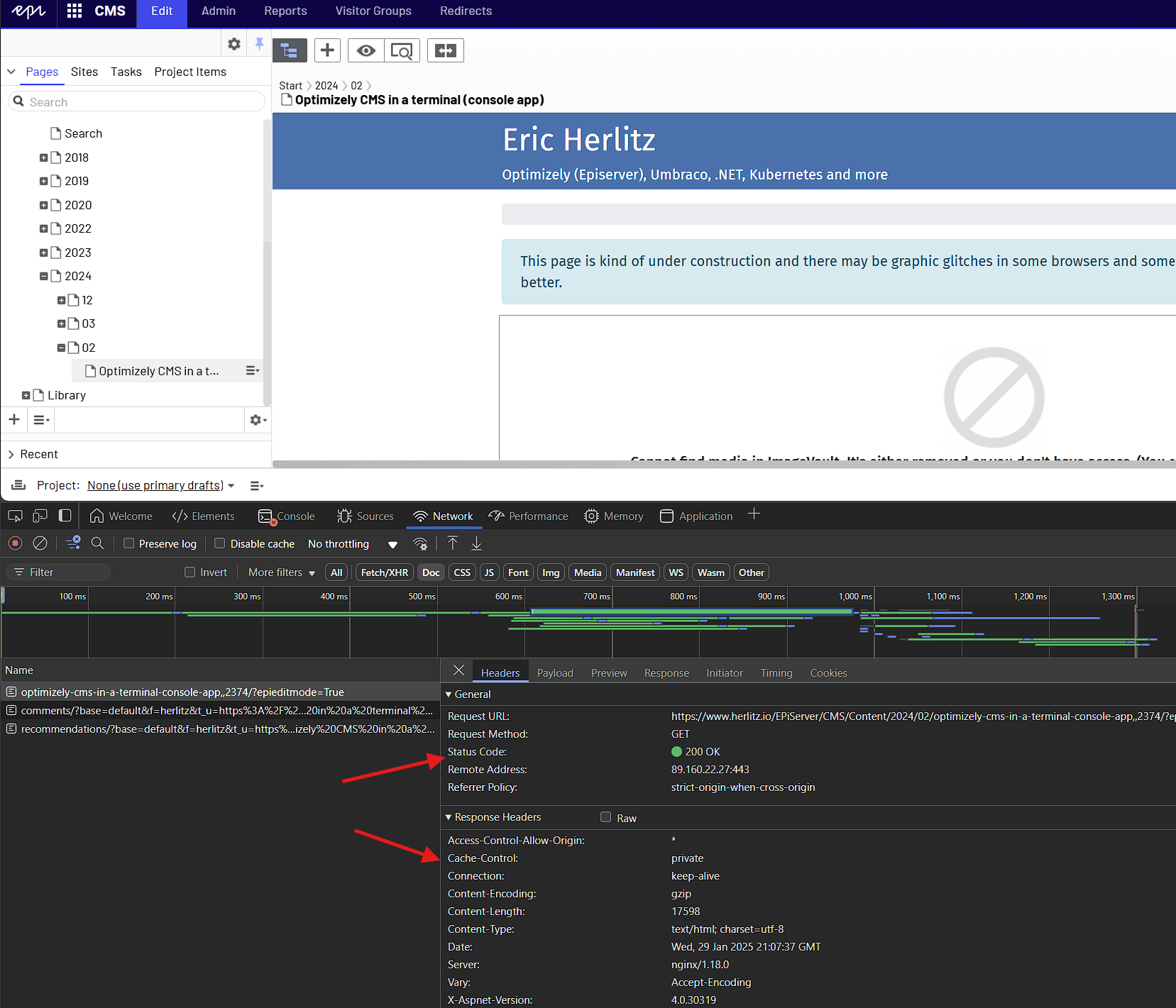 The status is 200 OK, and below is the cache control. This means it is getting cached at cloudlfare. Because once we clear CDN cache, and then click preview, then we can see the changes, then the doc gets cached again, and stops reflecting new changes.
