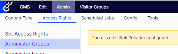 Note: Since I can access the Episerver-admin at all does it seem to me that the role Webadmins is the, but not shown in Set Access rights.