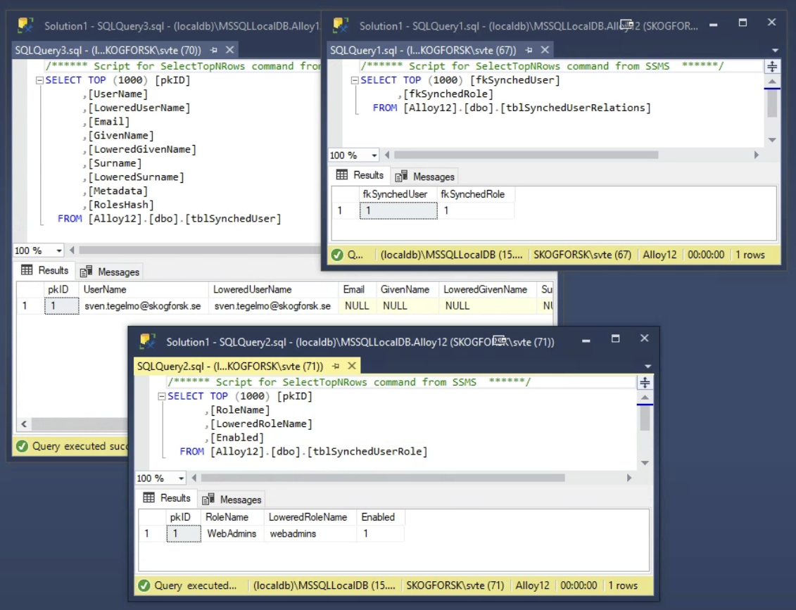 Second: The more relevant problem is that I can not see/get any roles passed from AAD in Set access rights. Corrently only one role is used (not tried to configure for more roles from AAD, but thats the next step). The logged in user is Webadmin, but it does not show up in Set Access rights. I can only see the user there. (See the first snapshot above).