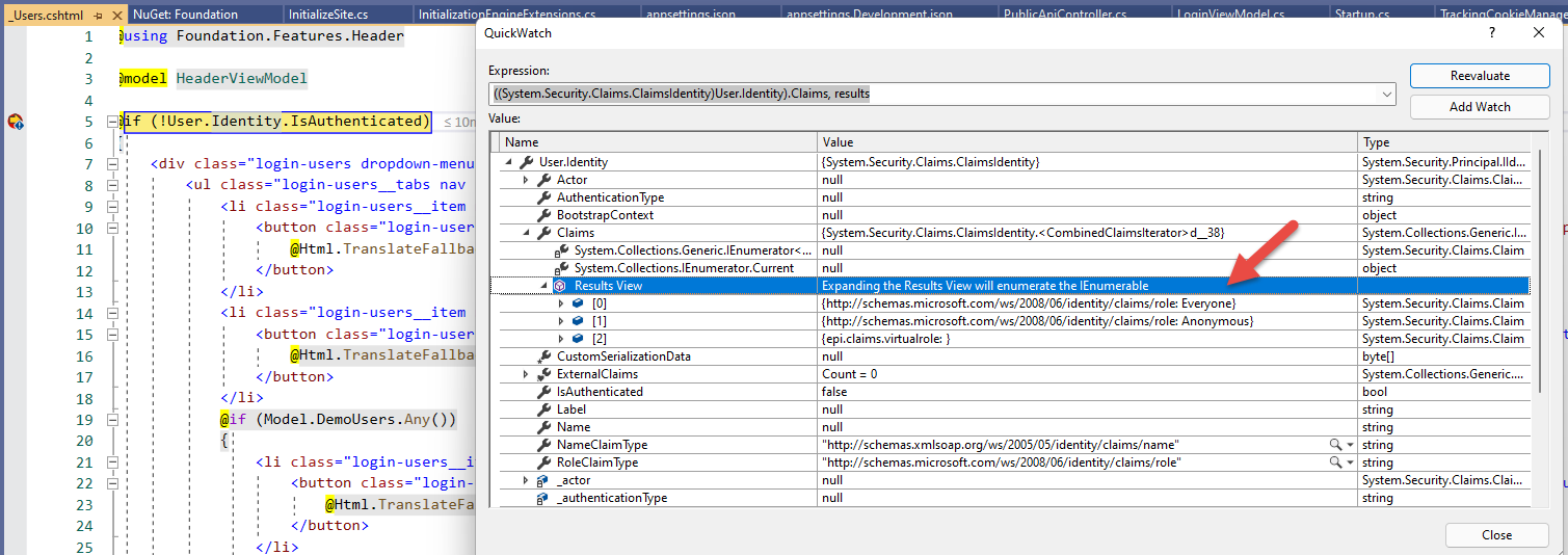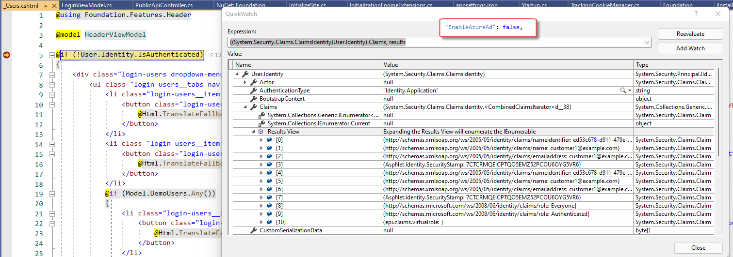 Otherwise, if I disable Azure AD, we can get all claim and User.Identity.IsAuthenticated = true. And we can log in front-end as normal.