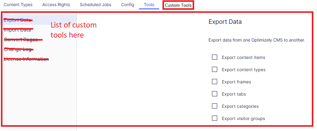 For example, optimizely has the built in "Tools" tab and within that, there is a list of tools that can be clicked on and interacted with. I would like to make a "Custom Tools" section and have a list of custom tools that works and looks like the built-in one.