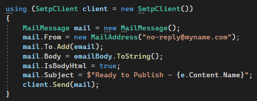 mail.Subject = $"Ready to Publish - {e.Content.Name}";