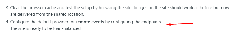 @vicent the documentation speaks to simply needing to configure the endpoints for the default provider, the link you shared is psuedo code for building out a custom provider. There seems to be a conflict. I'm looking for documentation on what to do to configure the default provider. Copied from the section about deploying to windows servers "Configure the default provider for remote events by configuring the endpoints."