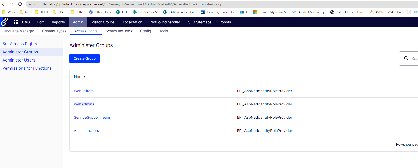 I created a new user group, ServiceSupportTeam