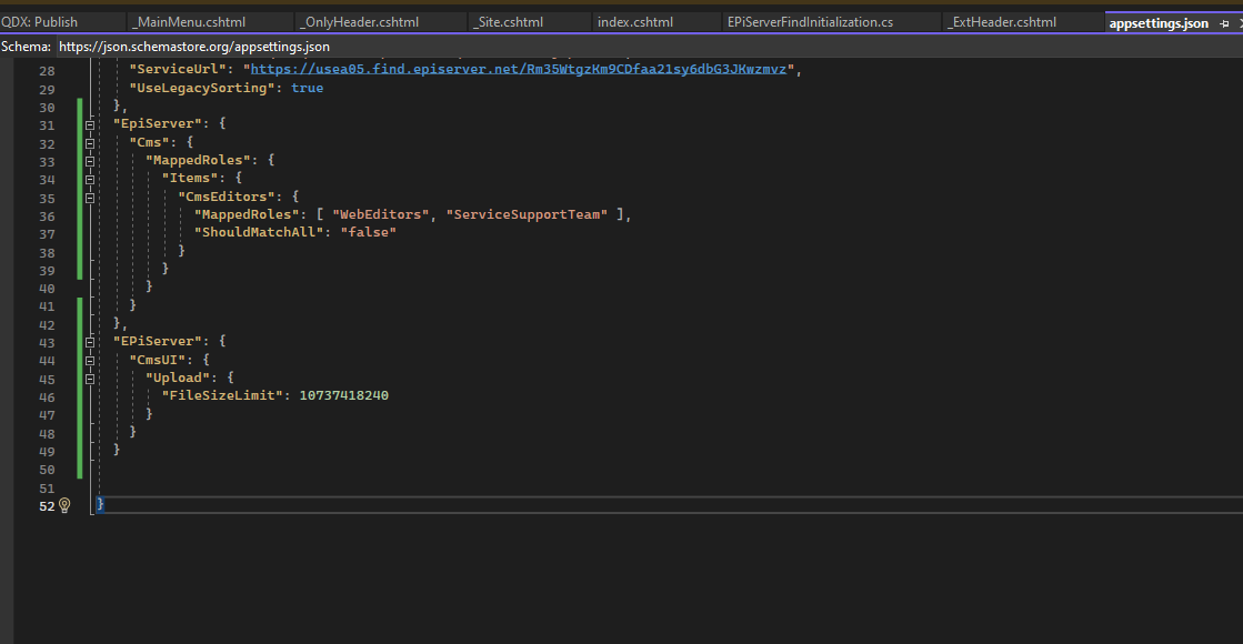 You configuration looks correct to me. I suspect you have virtual role mapping defined in appsettings.Development.json too and the MappedRoles has different value compare to appsettings.josn's one. If above assumption is correct, you can either remove virtual role mapping from appsettings.Development.json OR add ServiceSupportTeam in MappedRoles to appsettings.Development.json file. In ASP.NET Core application, appsettings.{Environment}.json values override keys in appsettings.json by default