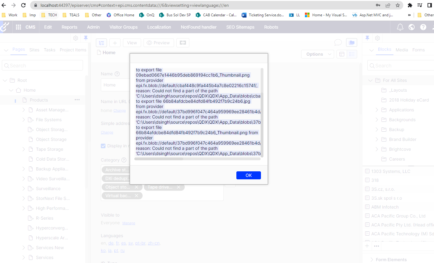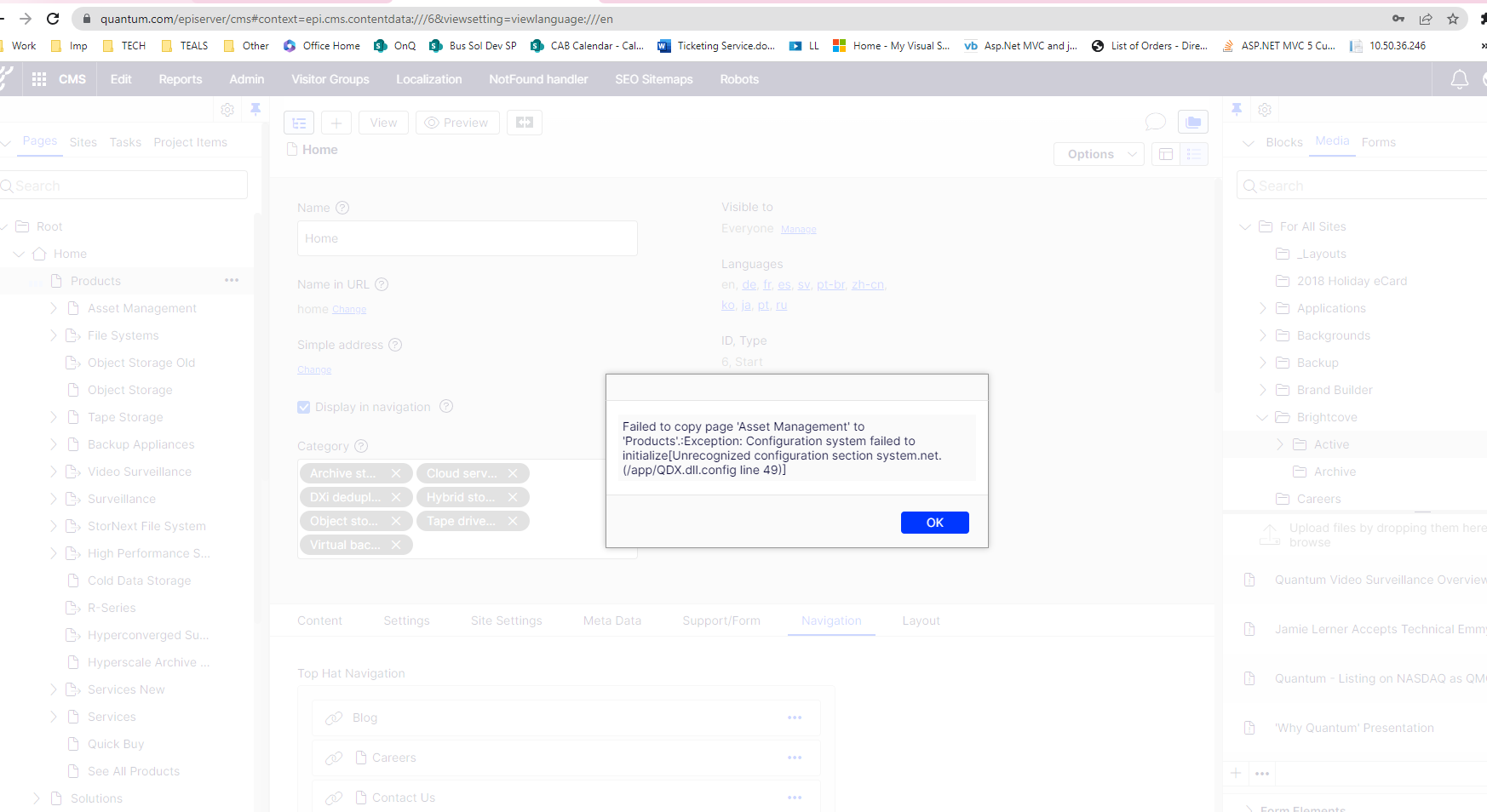 When trying to copy paste a page, getting this error: