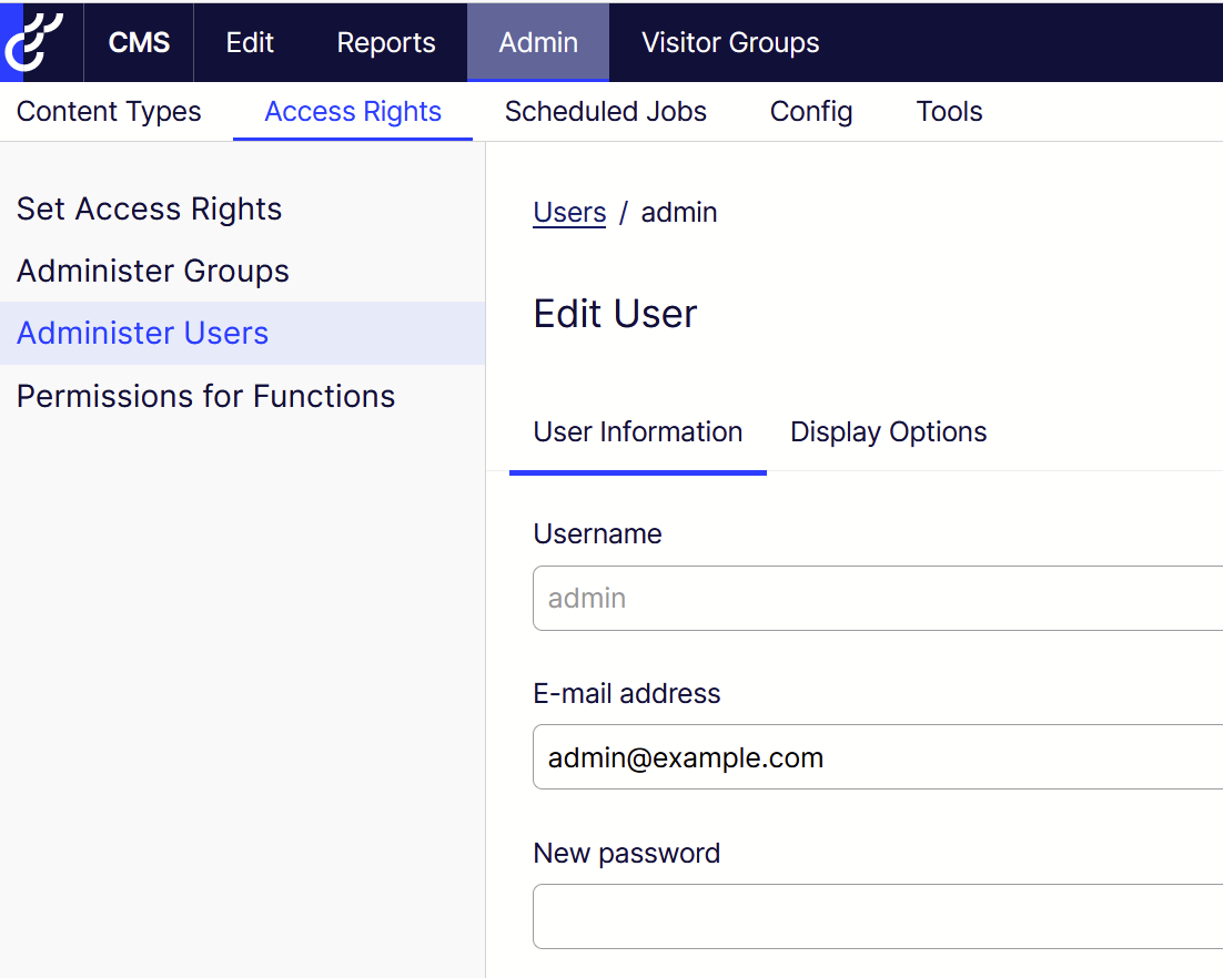 For an existing user the Username field is disabled.