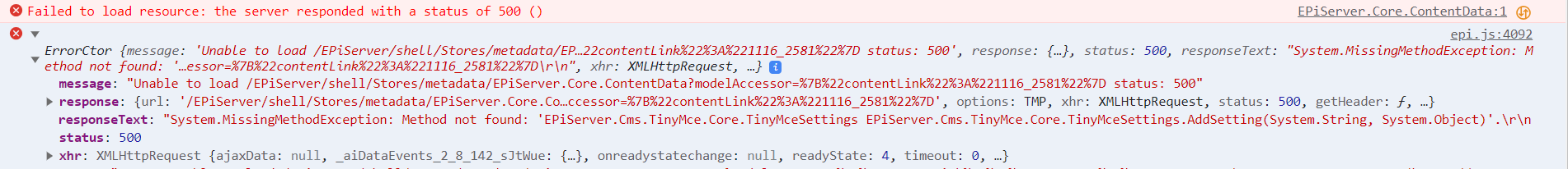 It looks as though it can't find 'AddSetting' from the tinymce although I can see on the documentation that it should be there.