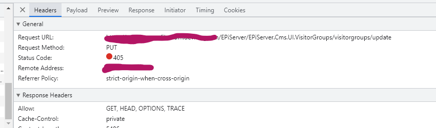 When trying to update the visitor groups I get 'method not allowed'.