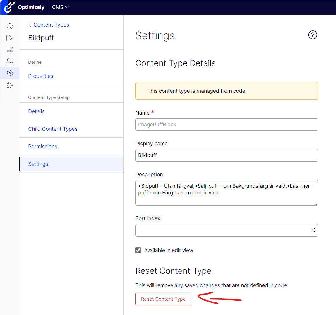 You will probably have to reset the content type in the [CMS > Admin > Content Types] section