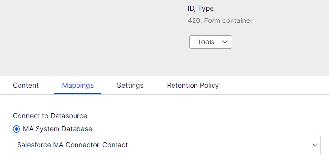 Just making sure -- on the form container itself, have you set the Mapping to the Salesforce connector? Once the form itself is mapped, then you should have the new option for mapping the individual form fields to Salesforce properties.