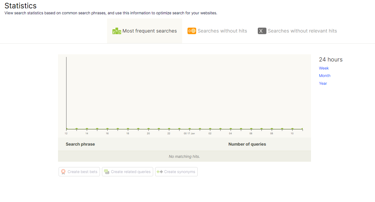 The first thing I'd suggest checking would be whether you've included the client-side tracking script as that's required alongside the "track()" call in order to collect the stats. You should see a find.js script added to the output of your page. I'd also suggest cchecking whether you've got a content security policy in place which might block the script loading from dl.episerver.net.
