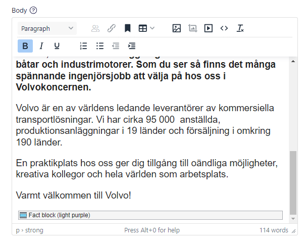 In this project the editors very often add blocks to the TinyMCE editor like this: