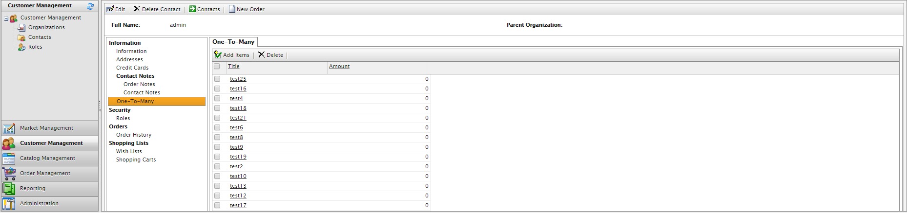 1. Add a new one-to-many relationship to the customer in Commerce Manager, Administration, Business Foundation.